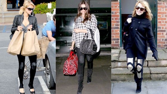 As if some of these leggings weren't already questionable, stars like Khloé Kardashian Odom and Kylie Minogue are topping off the look with leather and metal knee pads.